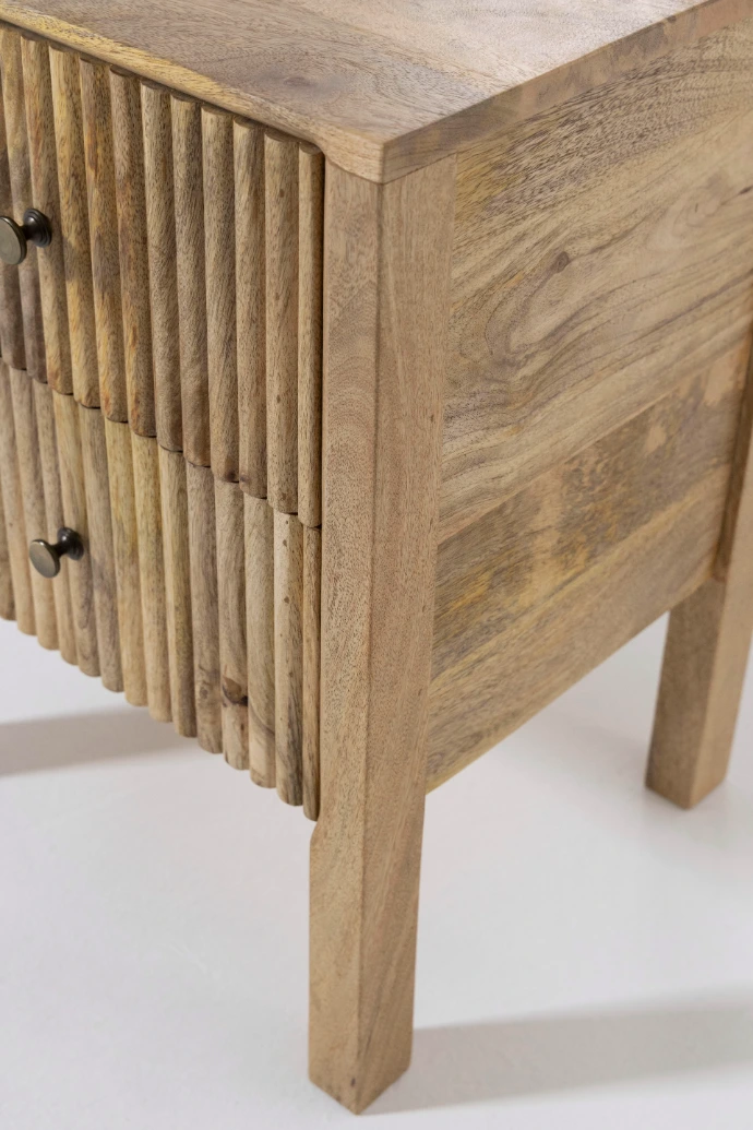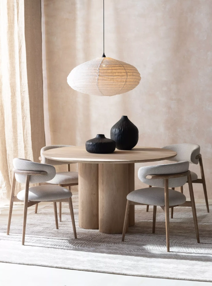 La madera de mango es uno de nuestros materiales principales y uno de los más representativos en nuestra colección. Se caracteriza por su gran resistencia, su estabilidad estructural y su veta marcada, que aporta personalidad y autenticidad a cada pieza. Sus tonos cálidos y naturales crean ambientes acogedores y aportan presencia a cualquier espacio.