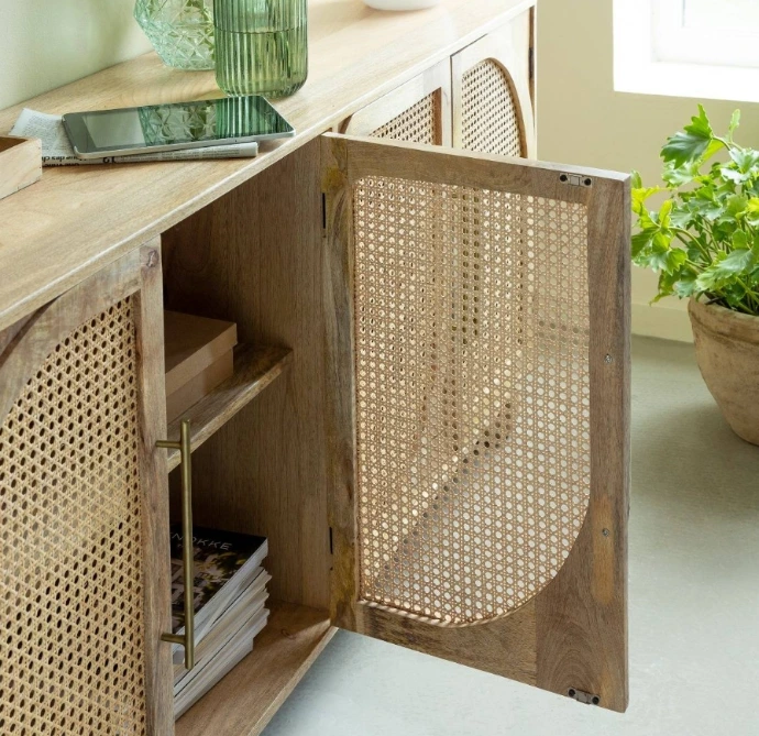 El ratán es una fibra natural ligera y flexible que aporta un carácter artesanal y orgánico a los diseños. Su textura y acabado transmiten frescura y calidez, convirtiéndolo en un elemento decorativo y funcional muy apreciado.